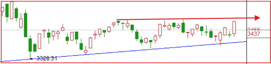 但量能放的不是很大,且来到左侧3495点附近,套牢盘还是比较多的。