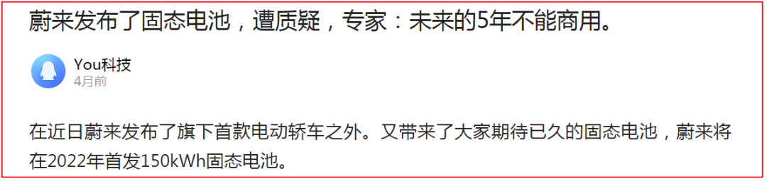①:蔚来采用的固态电池其实是固液混合电池或者半固态电池。这是固态电池到来前的一个过渡方案,两者混合的比例和安全性目前在国际上还没有定论。
