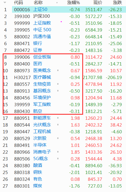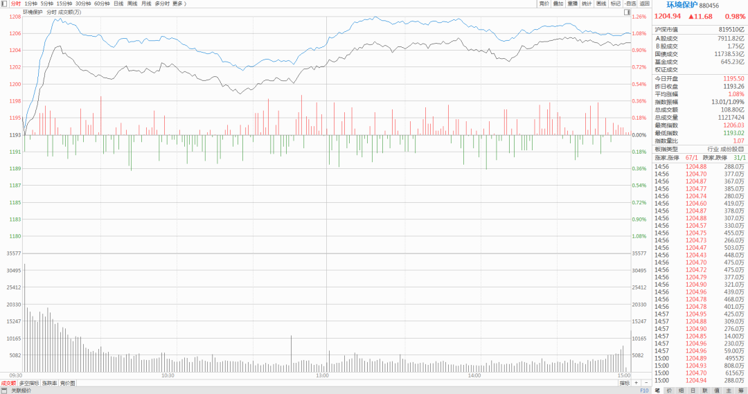 从细节上看,今天大部分板块都是冲高回落,或者低开低走,只有环保板块是逐渐推升。