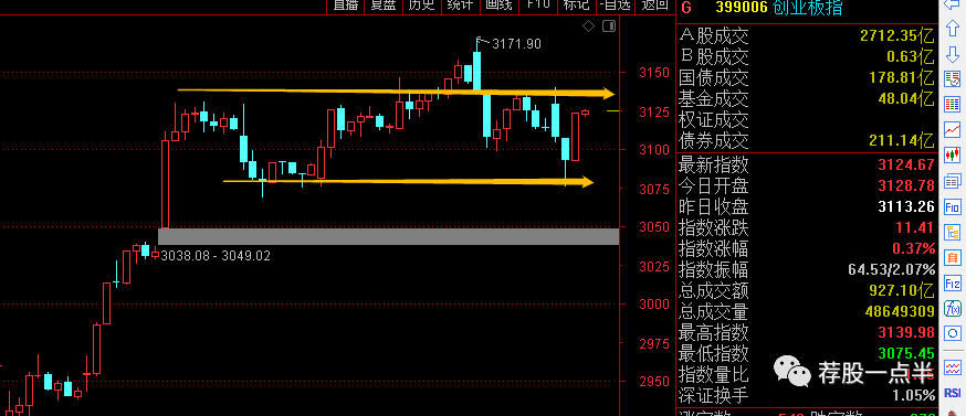 从创业板指数可以看出来,这里是一个明显的支撑处的反弹。