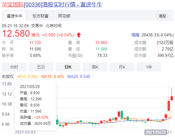 5月21日,港股电子烟继续强势上涨,华宝国际一度涨超19%,中国波顿盘中涨超9%,思摩尔国际等跟涨,不过一周时间,华宝国际涨幅已达46.36%。