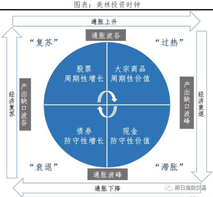 也就是说 在经济复苏阶段,股票是最佳投资标的;而在经济过热阶段,大宗商品 是最佳投资选择。