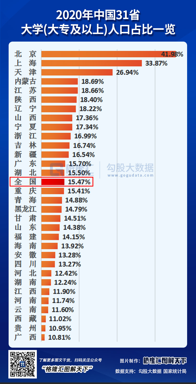 5、教育程度: 大学文化程度接近1.55亿人,比10年前增长73%。文盲率下降至2.67%。实际上人口素质提高非常可客观,甚至可以说大学生渗透率已经非常高了,甚至一定程度上有内卷迹象。