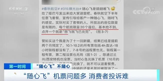 如此“优惠”,可想而知“随心飞”产品有多火爆,上线不到两周售出10万套,甚至出现黄牛高价倒卖的情况。 东方航空开了好头后,其他航空公司纷纷跟进,热闹非凡。 但天上不会掉馅饼,人们发现,“随心飞”并不随心,甚至还很闹心。 比如规定,必须在出发前5日以上订票;航班大部分是中转航班;还有消费者反映,请求退订,打了20多个电话都打不通。