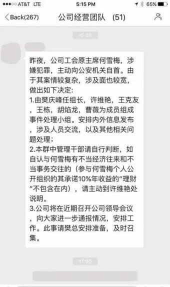 2015年11月,何雪梅向前中兴通讯公司人力资源部部长、中兴宜和公司董事曾某发出邀约:“我有收益较高的理财渠道,期盼您投资。”