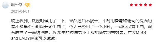 还有顾客打趣道:她家从不护肤的直男,平时油光满面。用了她买洗面奶后,看起来整个人清爽了很多,一改油腻青年形象。