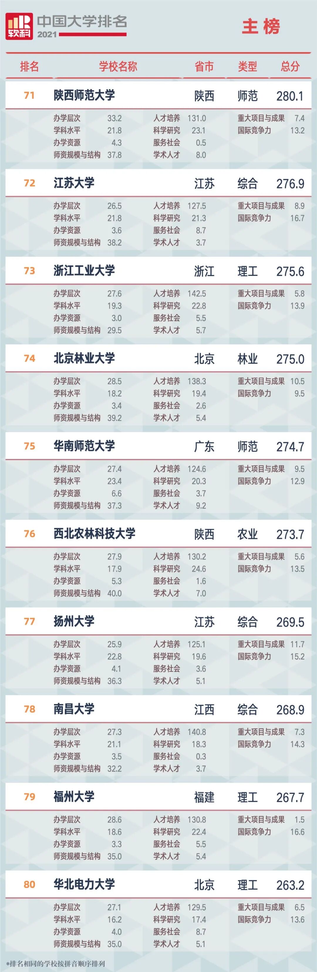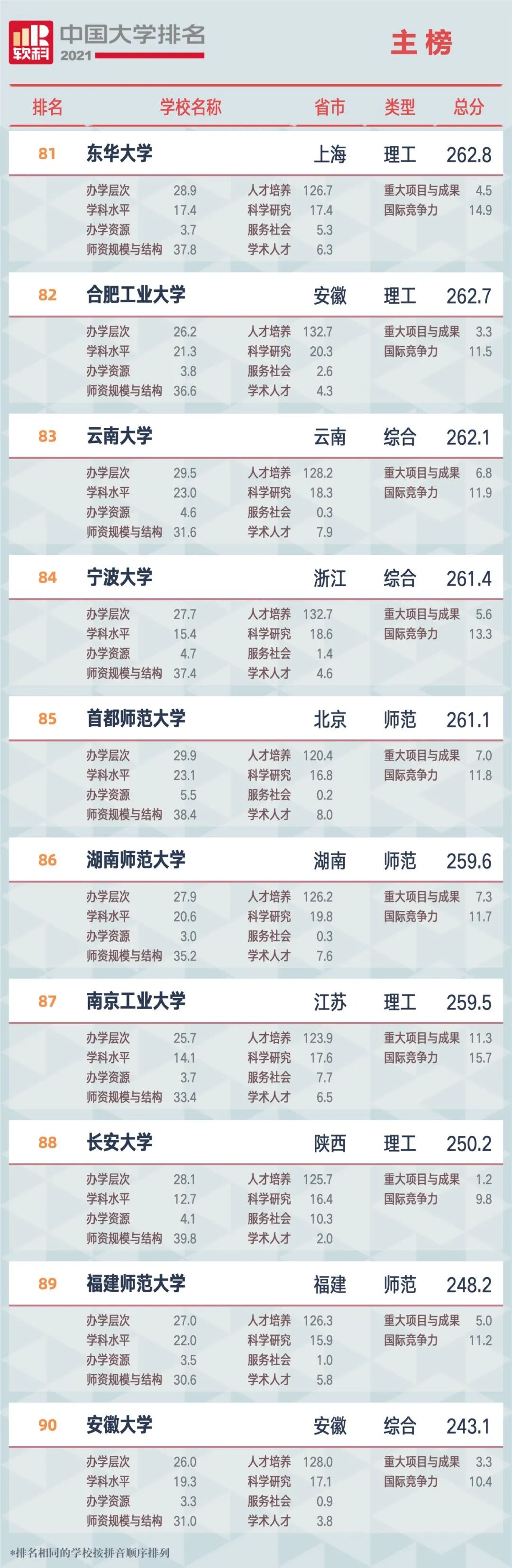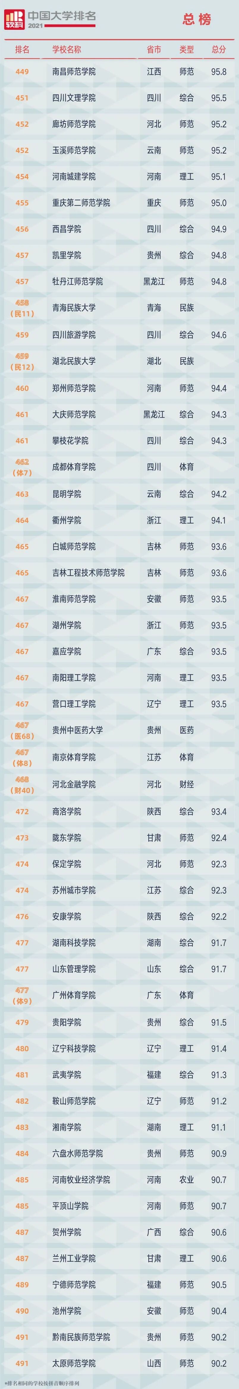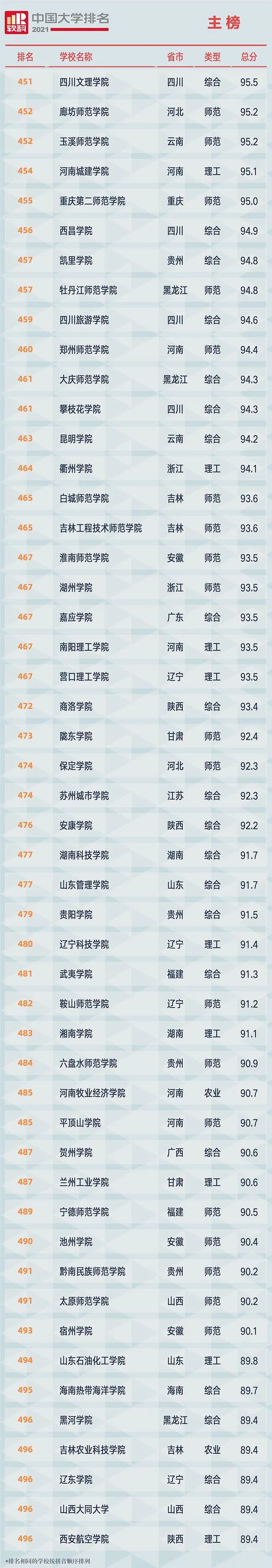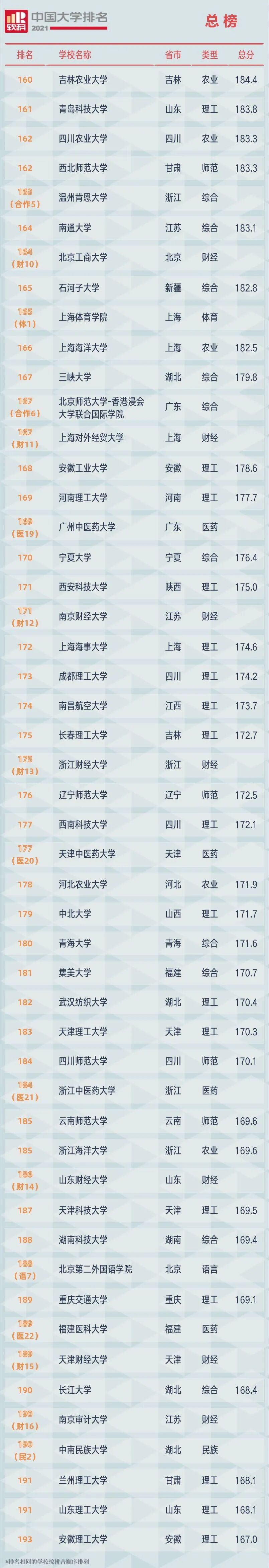 下表为综合性大学排名、6个单科性大学和合作办学大学的全国参考排名总榜单。
