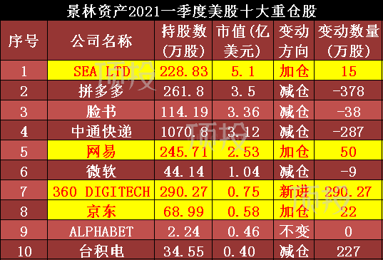 景林资产在一季度加仓15万股SEA,目前持股228.83万股,市值5.1亿美元,是第一大重仓股。