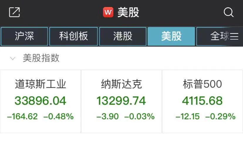 截至收盘,道琼斯指数报33896.04点,下跌164.62点,跌幅0.48%;纳斯达克指数报13299.74点,下跌3.90点,跌幅0.03%;标普500指数报4115.68点,下跌12.15点,跌幅0.29%。道指盘中一度下跌逾580点,美联储纪要公布后主要指数跌幅收窄。
