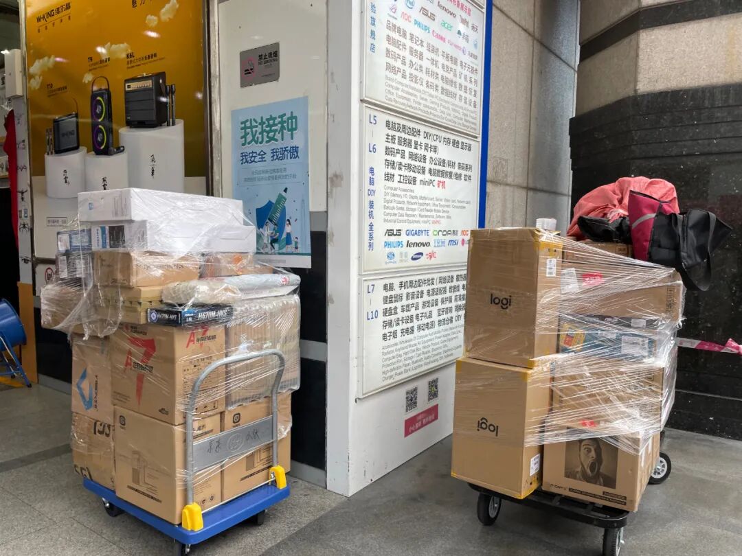也有正在拉货的商家告诉记者,因为有客户要求发货,为了不影响正常经营,就顺便进入楼内取了少量货物。