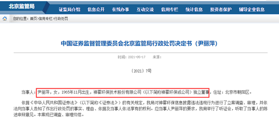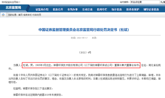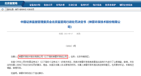 01神雾环保和多位当事人被开正式罚单 因未按期披露2019年报