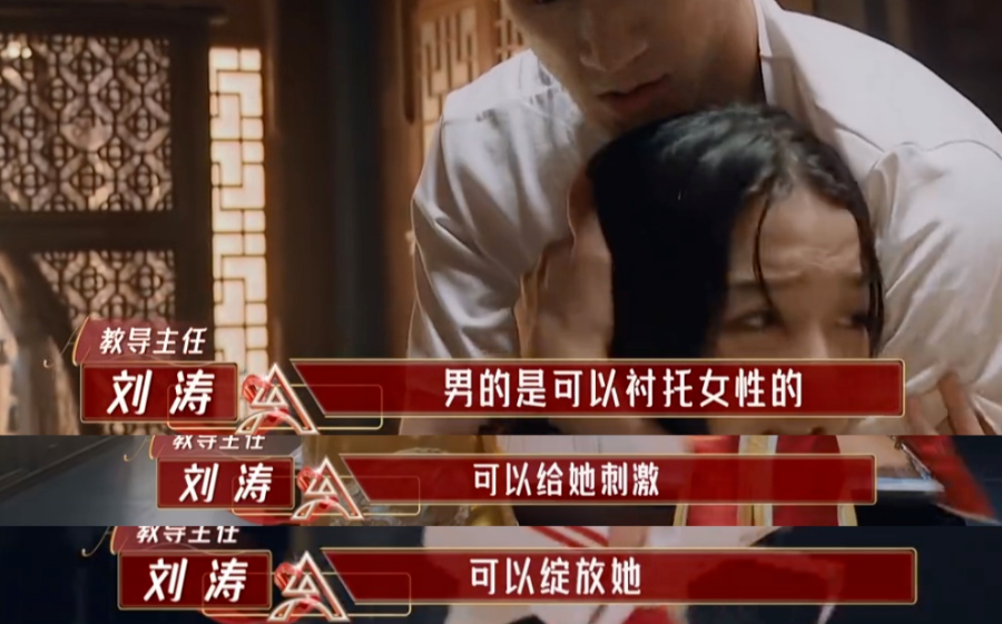 在节目中,男导师在众目睽睽之下,粗暴地骑着了一女演员身上, 打着演戏的旗号,光明正在地“强暴”女性。