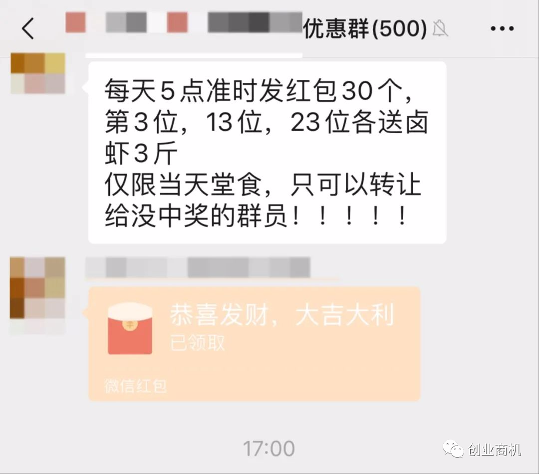 他每天坚持,在群里举行抽奖活动,一个群会抽奖3个幸运的群友,两个群总共6位食客,每人奖励3斤秘制卤虾,总共18斤小龙虾,天天如此。