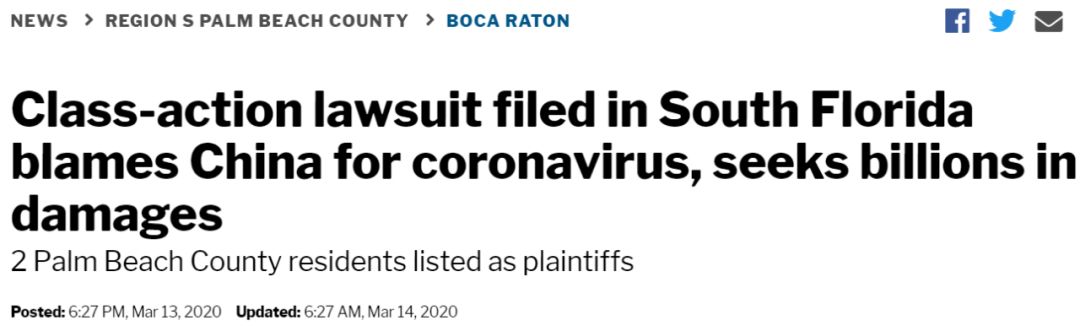 去年3月,美国佛罗里达州南部地区法院,一纸诉状将 中国、中国国家卫生委、中国应急管理部、中国民政部、湖北政府、武汉政府 告上法庭。