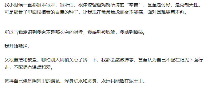 有人在爸妈哭穷之后拼命克制天性去讨好父母,知道家里并没有那么穷的真相后开始叛逆。