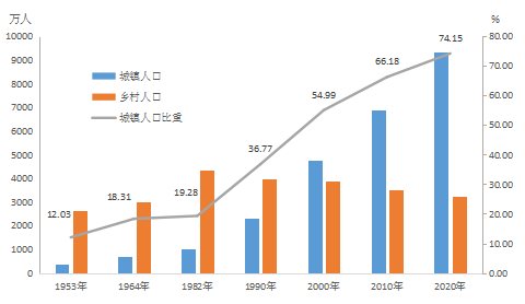 六、城镇人口比重超过七成,流动人口快速增长
