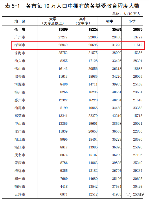 深圳每10万人口中