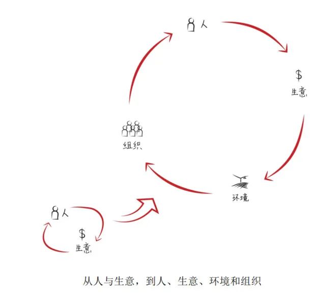 4、人、生意、环境和组织: 一方面希望Think big think long —— 谋大局,思长远,架起望远镜去观察变化,捕捉机遇。另一方面用显微镜研究生意的本质,看清它的基因、细胞,还有能量。