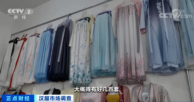 山东曹县汉服销售商 王逢青:我有一个客户只要我出新款她都要,她个人的储存汉服的房间大概得有好几百套。