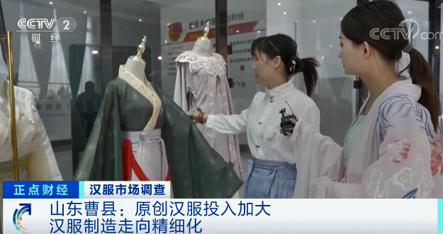 汉服制造走向精细化 汉服产业的发展道路并不平坦,山东曹县的汉服从最初被业内称为山寨货,到努力走原创道路,走向品牌化,曹县汉服产业的发展也是整个汉服市场的缩影。