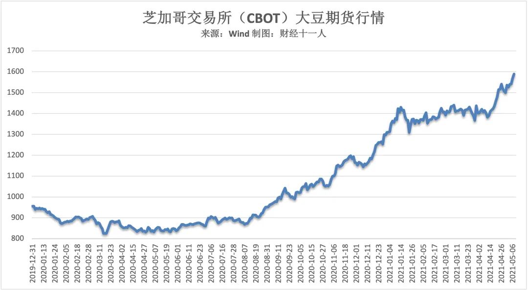 此轮铁矿石价格上涨的起点是2020年4月,并带动了下游钢铁产品的价格上涨。不仅铁矿石和钢铁,其他如有色金属、原油、棉花、大豆等各类大宗商品上涨的起点,都在2020年四五月份,这一时间节点基本与中国经济在疫情后恢复正常的节点一致。