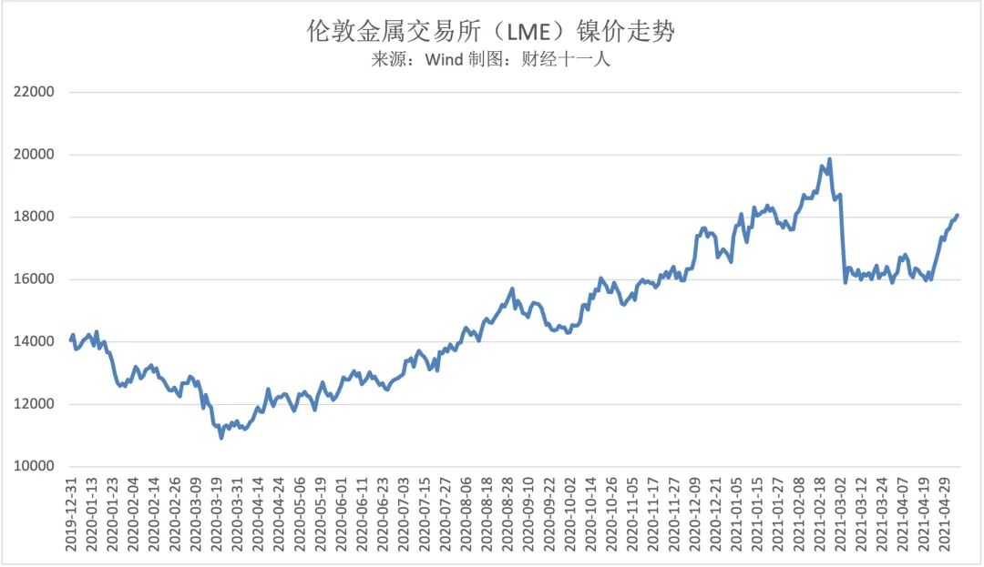 碳中和的大背景下,资源企业也在寻求转型。过去一年里,铜、镍等与新能源、电力、电动车产业密切相关的有色金属的涨势也尤其引人注目,5月7日,伦敦期货交易所(LME)期货铜价收于10412.5美元/吨,创历史新高。