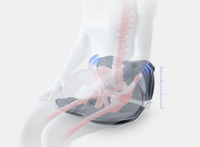 加上坐垫的 4个分区支撑系统 使其 受力均衡分布, 不会只压迫臀部,即使久坐也不会产生屁股酸痛无力的感觉