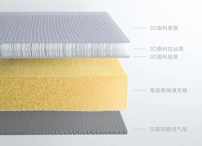这款坐垫不仅舒适而且 弹性强 采用 3层空气层外套+高弹棉 以及 抗菌抑螨透气层, 给你带来舒适缓压、抗菌防螨的效果