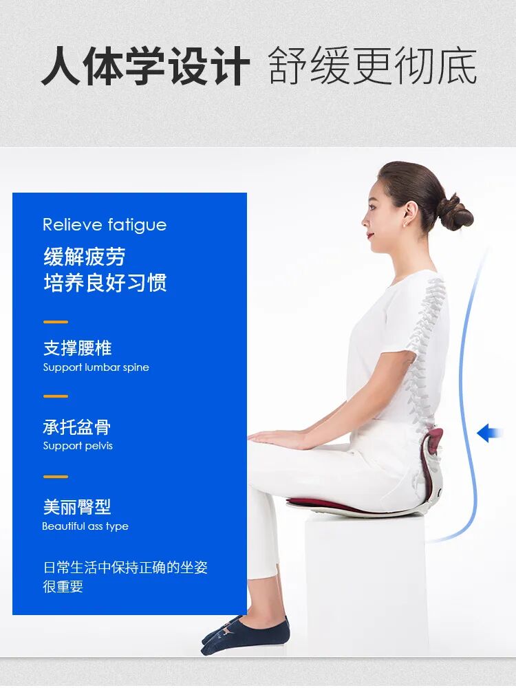 你还在为长时间的错误坐姿带来的浑身酸痛,屁股又扁又丑等多种困扰而发愁吗?只需换上这款护腰坐垫即可轻松缓解脊柱压力,保持优雅坐姿 在上班工作时间里就能改善体态