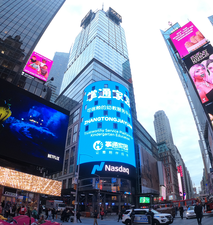 掌通智慧校园成为家园共育领域 首个登上纳斯达克大屏 的中国品牌。