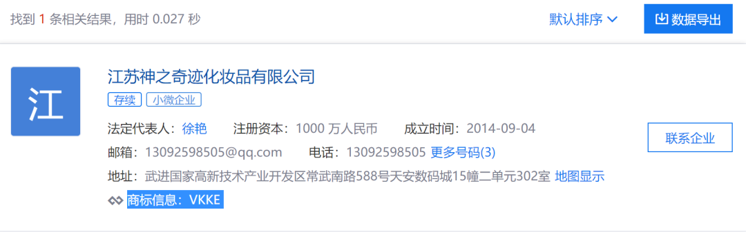 据百度百科显示,“殷世航,男,汉族、浙江丽水人,生于1999年,VKKE品牌创办人,知名网红”。但据启信宝显示,VEEK品牌所属的江苏神之奇迹化妆品有限公司,并没有殷世航的名字。