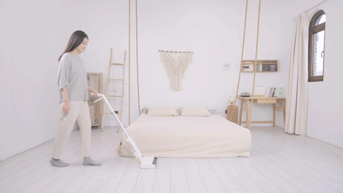 拖头可以低角度进行扫拖, 像沙发底、床底、柜子底也都可以轻松清洁干净。