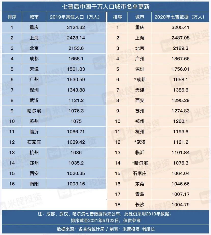 加上长沙、青岛的晋级,中国目前的千万人口城市名单,扩容到18个: