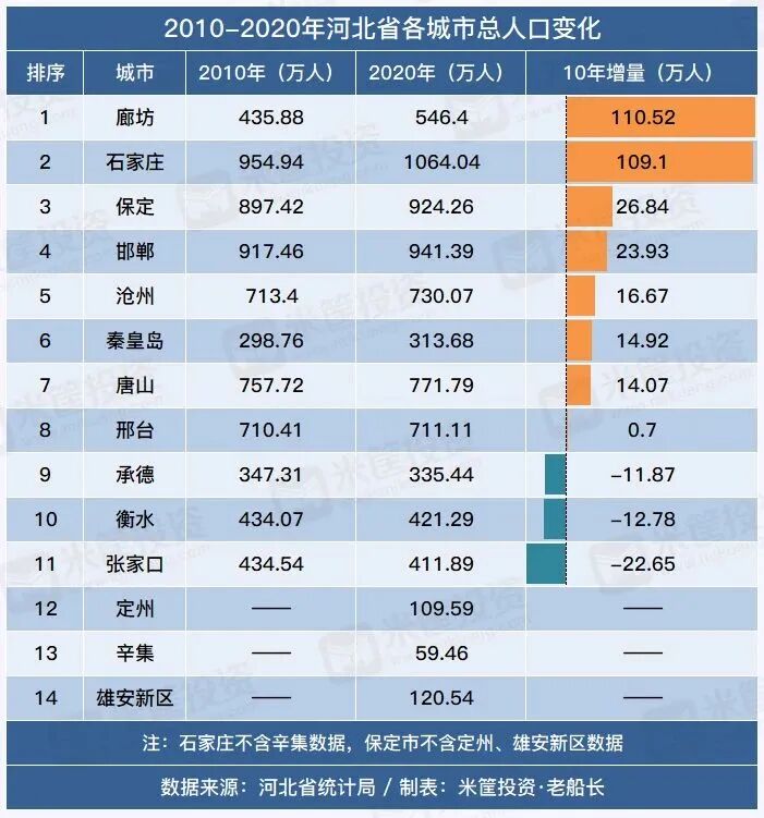 此外需要说明的是,石家庄数据不含辛集,但60万人口对总量影响不大。但保定的数据不含定州和雄安新区,这让保定始终没能突破千万人口。