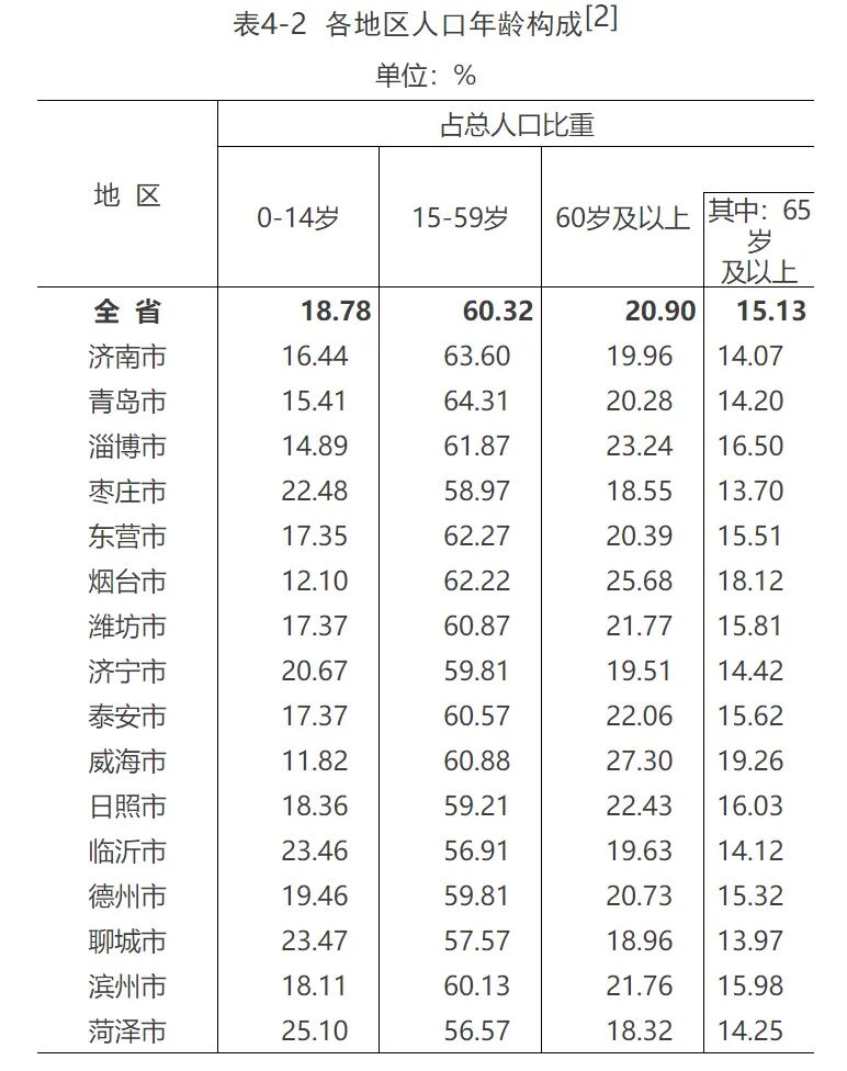 尽管山东只有1个地级市的人口在净流失,但坏消息是,山东太老了。