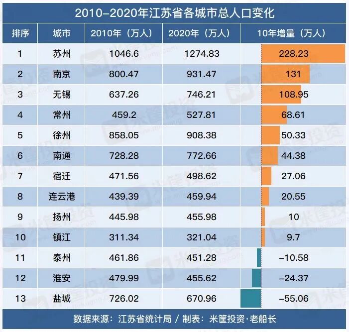 但在江苏,南京只能蜗居老二的位置。2020年,苏州总人口1274万人,比2010年增长了228万人。无论是总量还是增量,都压了南京一头。