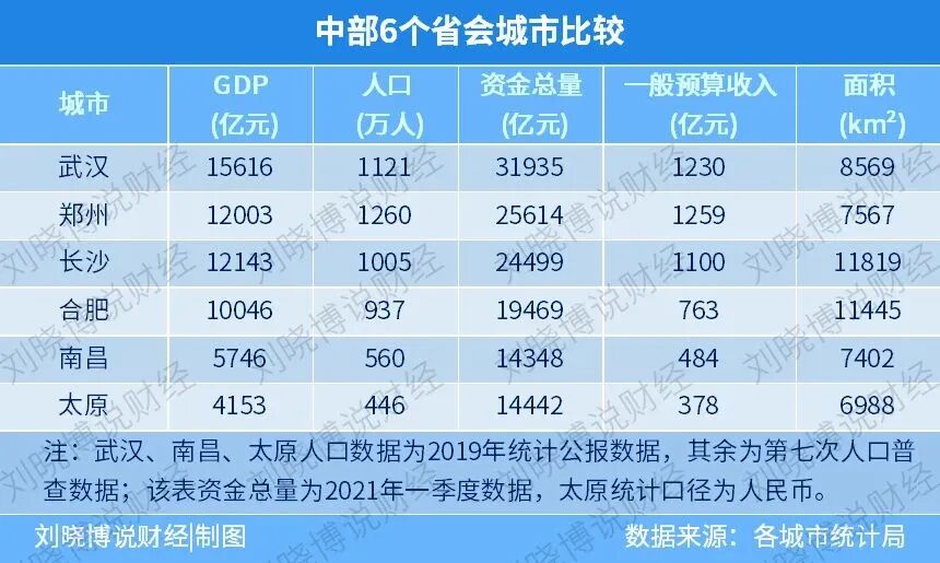 第四是长沙。长沙最近两年发展比较快,GDP超过了郑州,位居中部6省会城市第二;常住人口在第七次人口普查中超过了1000万,实现了历史性突破;汇聚的资金总量,也直逼郑州。但遗憾的是,长沙的城市定位不高,在获取各种资源上比较吃亏。
