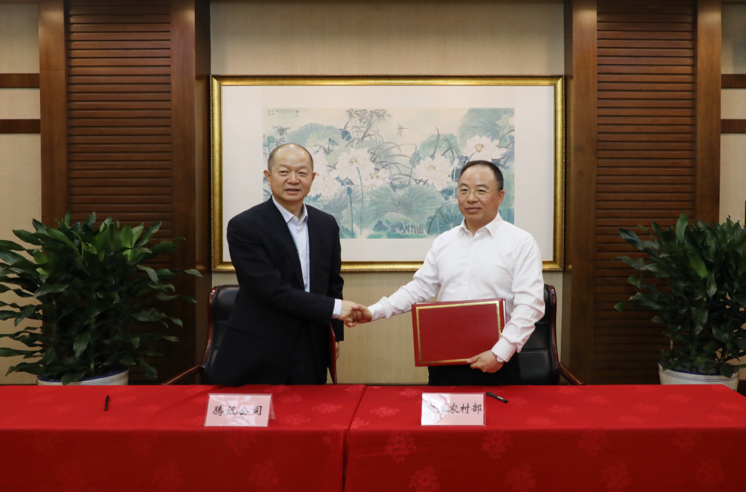 5月24日,农业农村部与腾讯公司在京签订“耕耘者”振兴计划战略合作协议,双方共同合作实施“耕耘者”振兴计划,促进我国乡村治理体系和治理能力现代化,推动乡村全面振兴。农业农村部党组成员兼任中央农办秘书局局长吴宏耀,腾讯公司党委书记、高级副总裁、腾讯公益慈善基金会理事长郭凯天分别代表双方签约。农业农村部农村合作经济指导司司长张天佐介绍了双方合作的有关情况。中央农办、农业农村部、国家乡村振兴局相关司局负责人,腾讯公司副总裁、腾讯可持续社会价值事业部负责人陈菊红等参加了签约仪式。
