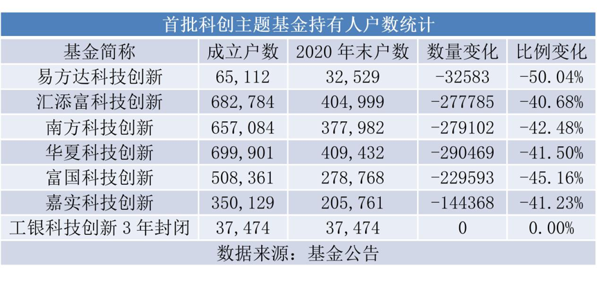 《财经》新媒体注意到,除了采取三年封闭运作的工银科技创新外,其他6只首批科创主题基金均出现了不同程度的份额缩水,同时持有人户数减少了四到五成。