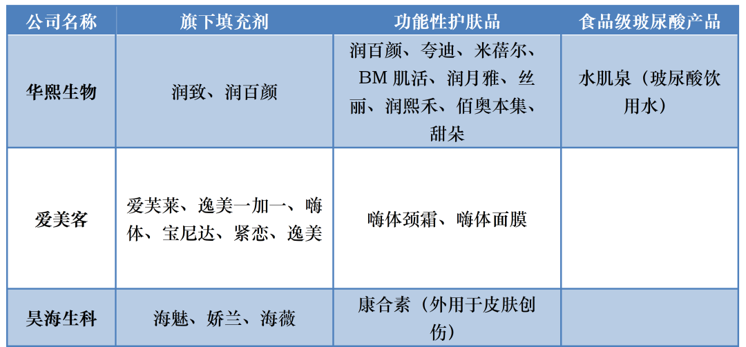 图1 玻尿酸“三剑客”已上市医美产品管线 财联社记者整理