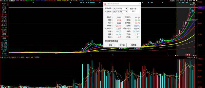 受此消息刺激,昨日午后10倍牛股小康股份再度爆发,股价震荡走高,临近尾盘在大资金的簇拥下股价最终封上了涨停板。截至收盘,股价报66.54元/股,当日换手达8.62%,成交 53.66亿,市值也进一步逼近千亿大关。