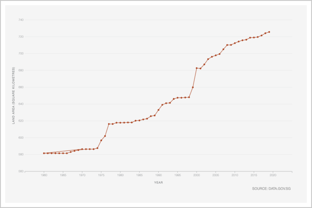 ▲新加坡国土面积(1900年-2019年)