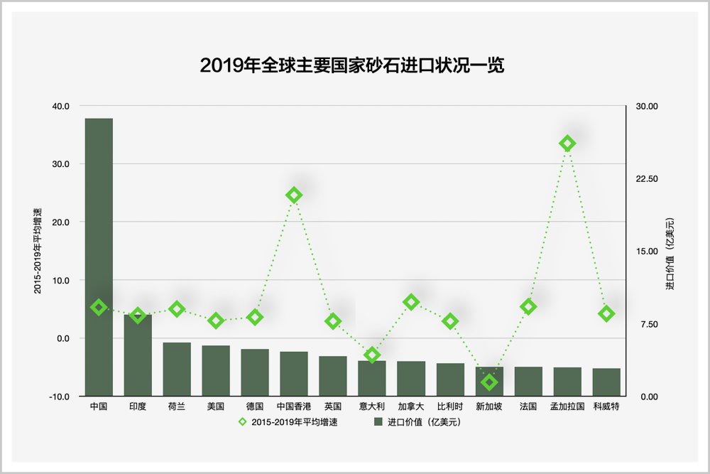 ▲2019年全球进口砂石国家排名来源:联合国商品贸易统计数据库(UN Comtrade)