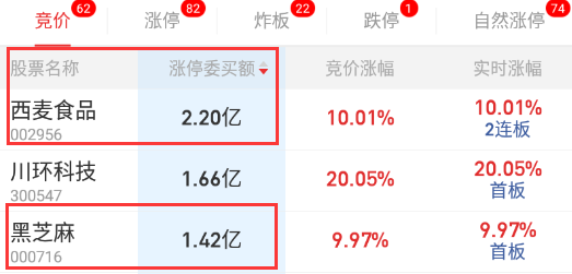 周五早盘竞价开出来超预期的是食品板块,西麦食品超预期大单一字,黑芝麻顶一字,可以看到加强的方向是食品板块。