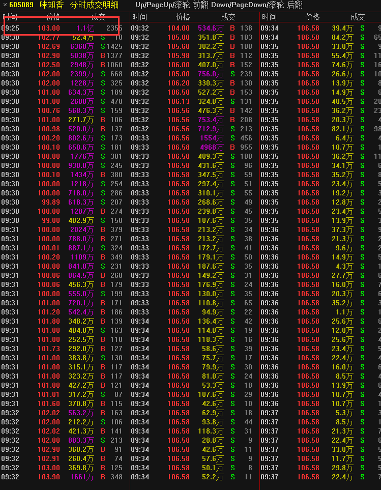 另外就是开板次新的 味知香爆量1.14亿,两市成交第二名 ,随后上板,从板块强度上来说,这个就是一个非常好的买点。