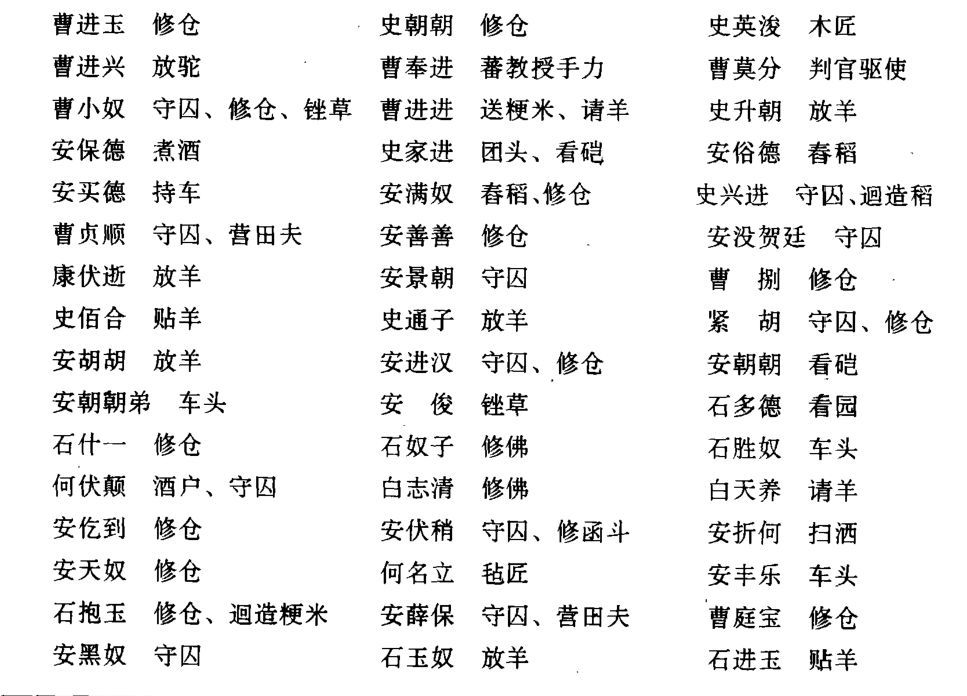 更何况,安禄山日后在官场上的升迁,很大程度上得益于自己善于察言观色,迎合圣意,以及个人的勇武善战, 在其做大之前,粟特商团对于他的扶持作用不宜高估, 因为很多粟特人来华之后,经过若干代沉沦,也沦落到社会底层,类似于安禄山的情况:比如《敦煌诸寺丁壮车牛役簿》,就记载了敦煌地区唐代底层粟特裔的生存状况: