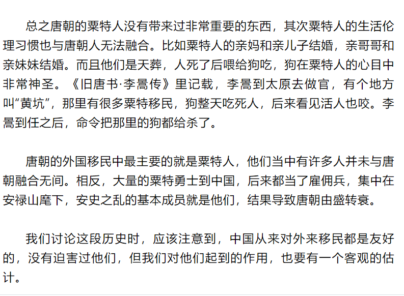 其实分析史料的很多细节就会发现,所谓“粟特人导致河北胡化”,安禄山是粟特人,所以粟特要为唐朝中衰背锅本身就经不起推敲。应该说安禄山等人是突厥化的粟特裔, 安史集团受到的外来文化影响,主要来自突厥和东北系少数民族;粟特人在安史集团起到的作用不宜做过高估计。