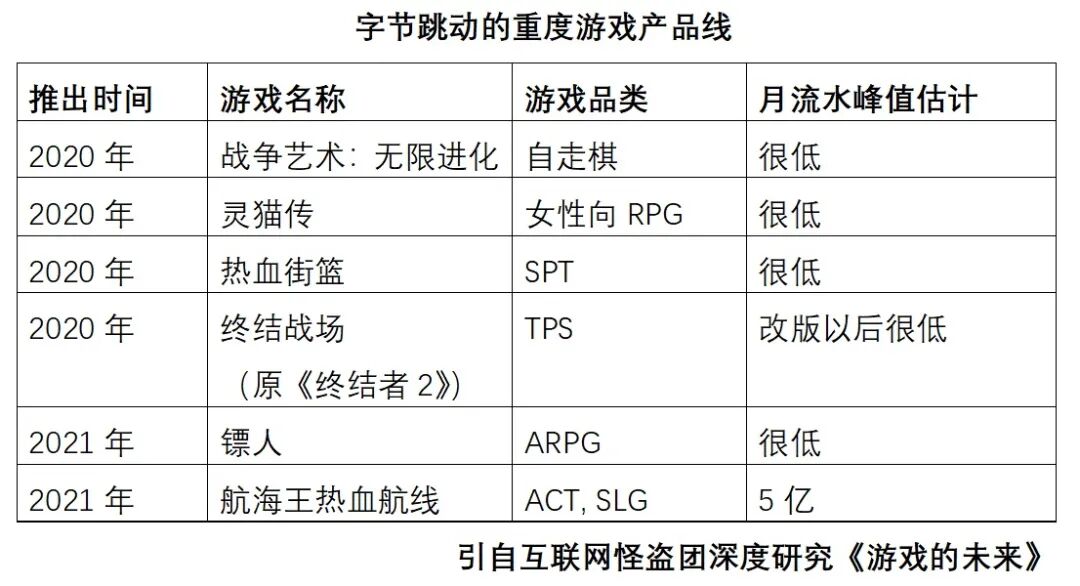 字节跳动也面临着类似问题:从2021年发行的自研产品《镖人》看来,它的游戏自研能力还相当有限。代理产品《航海王热血航线》取得了一些成绩,但是持续性还要打一个问号。就算在最乐观的情况下,《航海王》对字节跳动的意义,也不会比《三国志战略版》对阿里的意义更大——至少后者是自研的。这些年来,字节跳动一直想通过投资并购打开一条出路,可是绝大部分值得投资的游戏公司已经被腾讯先占住了身位。