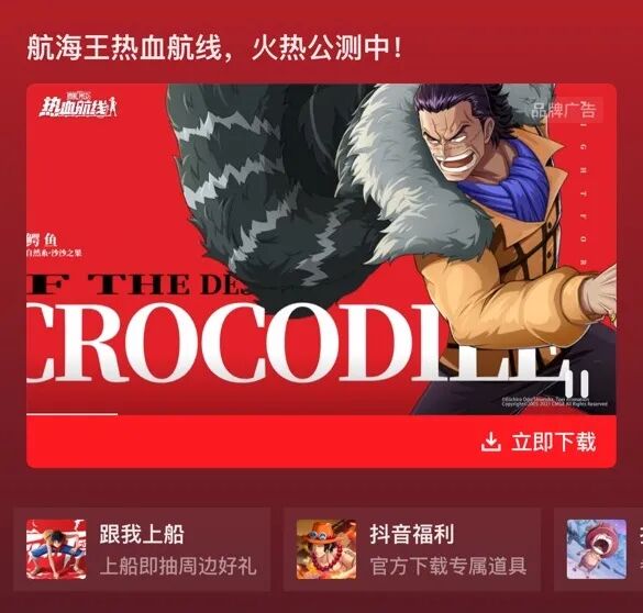 举个例子:《航海王热血航线》在抖音进行了浩大的宣传攻势,抖音不但提供了大批广告位,还开展投稿活动、设置玩家福利,耗费了大量资源。这些资源如果用在其他方向上,很可能带来更高的收入。说到底,任何平台的流量都不是免费的,都带有隐性成本。既然如此, 为什么要把流量导向自己的游戏业务,而不是卖给广告主呢?