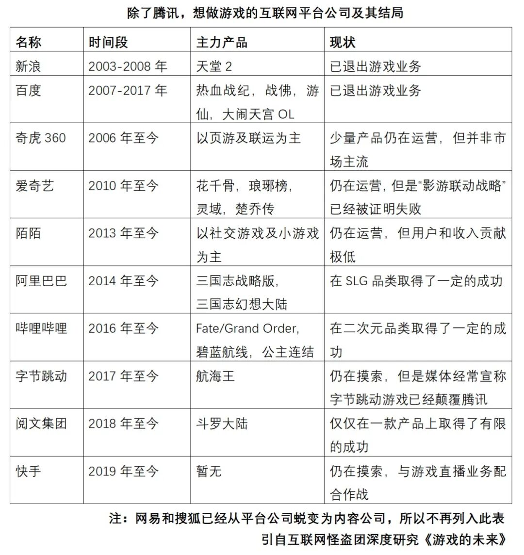 显然,上述观点是完全正确的。游戏是一门内容生意,需要遵循产品逻辑而不是简单粗暴的流量逻辑。但是,为什么很多人迄今仍不同意这一点?“只要有流量就能做好游戏”“游戏是一门渠道为王的生意”“任何互联网巨头都可能做好游戏”……这些早已被市场证伪的观点,为何至今仍有很多支持者?原因很简单:因为有腾讯。